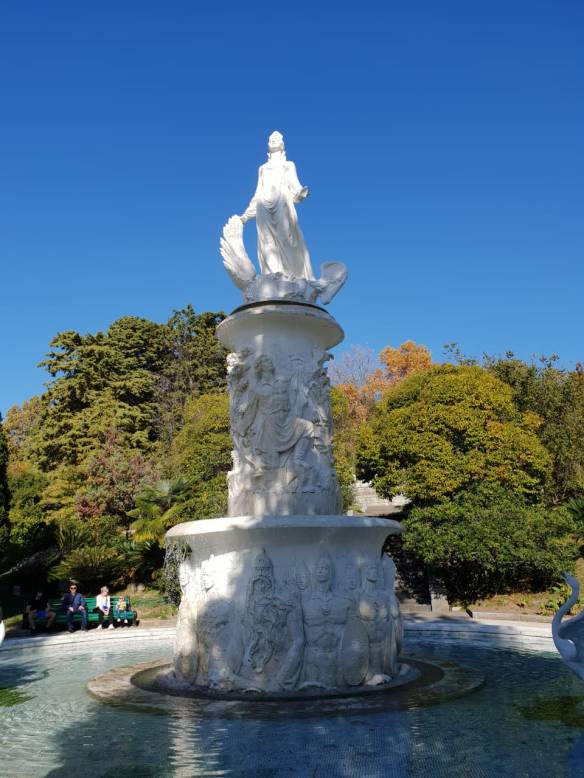 Wir liefen aus dem Park hinaus die Fontänen-Allee entlang und weiter zu den neu angelegten Terrassen am Rand der Altstadt. Dort geht es 20 bis 30 Meter in die Tiefe. Man hat einen schönen Blick auf die Stadt Volgograd (=Stalingrad), die auch auf einem Hügel gebaut wurde und Volzshky gegenüber liegt. Anschließend ging es die Terrassenanlage hinunter bis zum Strand am Fluss Akhtuba.